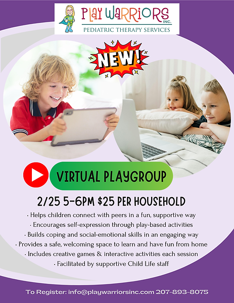 Welcome to Play Warriors, a comprehensive and compassionate multi-faceted therapy practice designed to meet the diverse needs of children and families in Bridgton and Windham, Maine. At Play Warriors, we are committed to providing comprehensive care that nurtures the whole child and supports families through their journey. Our highly skilled and compassionate team is dedicated to helping children and families thrive, promoting resilience, growth, and overall well-being. We also offer Telehealth visits for out of area families.
